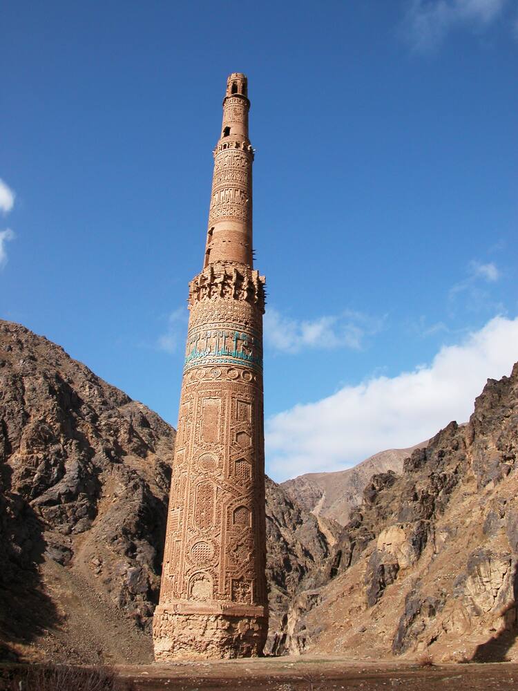 12. yüzyılda inşa edilen minare 65 metre yüksekliğinde, 2002 yılında UNESCO Dünya Miras Listesi’ne ve hemen ardından Afganistan İslâm Cumhuriyeti’nin de isteği ile UNESCO Tehlike Altındaki Dünya Mirası Listesi’ne alındı.